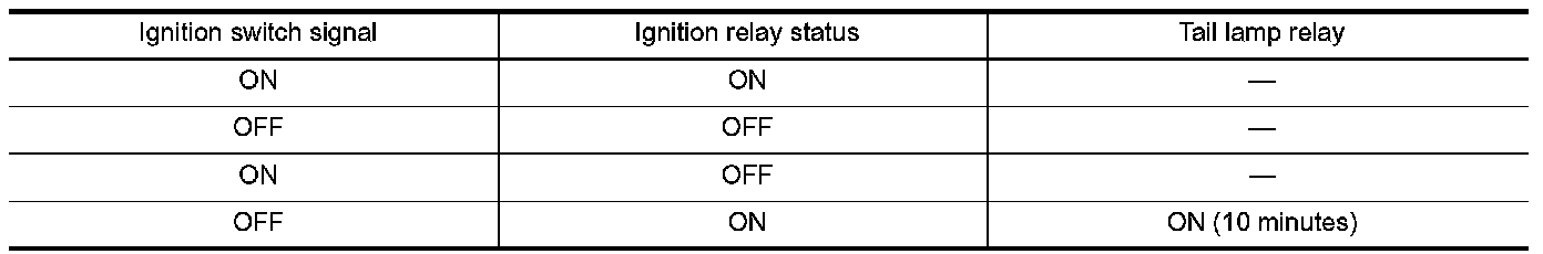 - When the state of the integrated ignition relay does not agree with the state of the ignition switch signal received via CAN communication, the IPDM E/R activates the tail lamp relay.