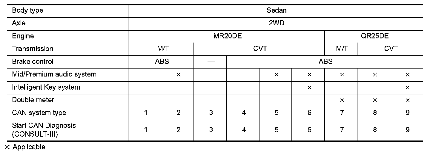 Refer to Trouble Diagnosis Procedure for how to use CAN system specification chart.