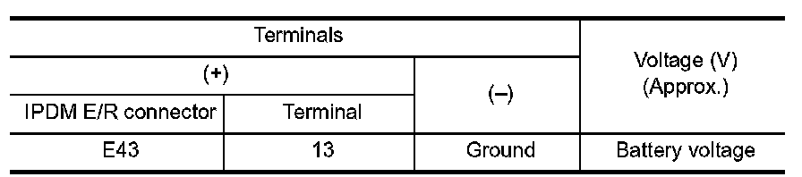 Check voltage between IPDM E/R connector and ground.