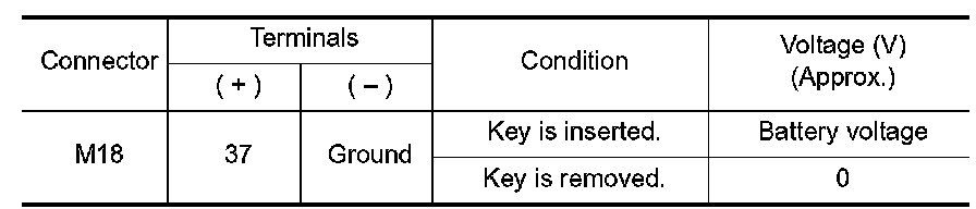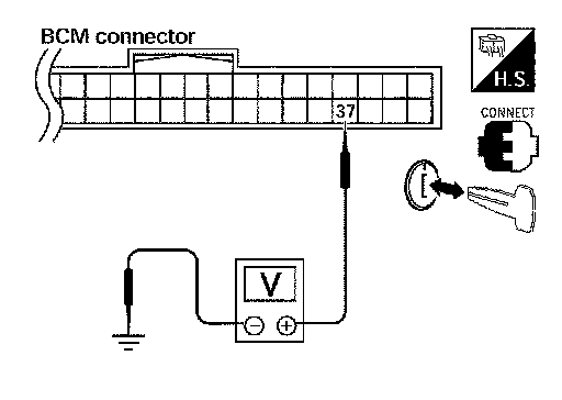 Check key switch "KEY ON SW" in DATA MONITOR mode with CONSULT�III. Refer to CONSULT-III Function (BCM).