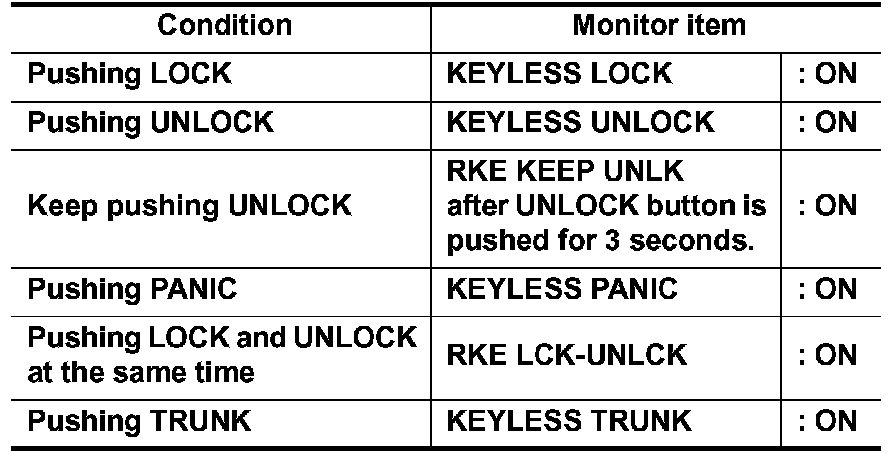 When pushing each button of keyfob, the corresponding monitor item should be turned as follows.
