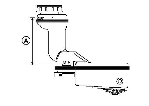 - Make sure the fluid level in the reservoir tank is between MAX and MIN lines (A) as shown.