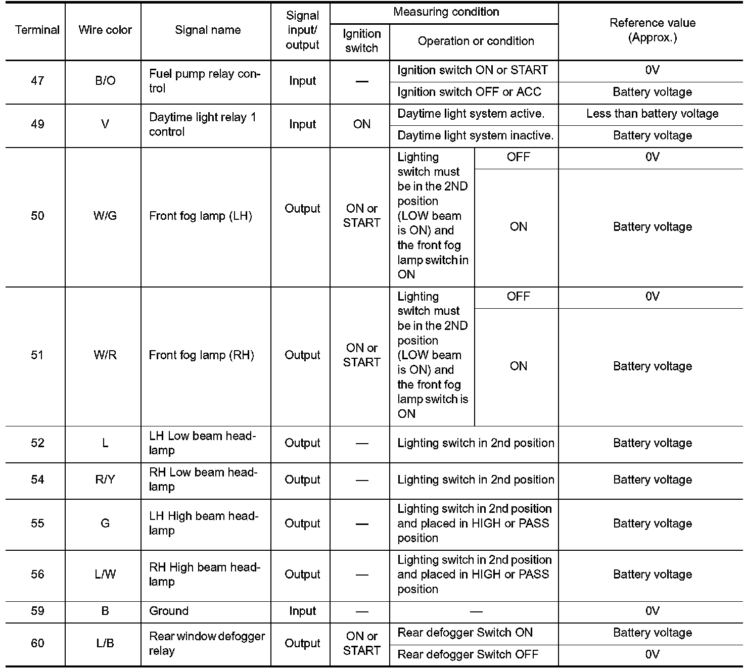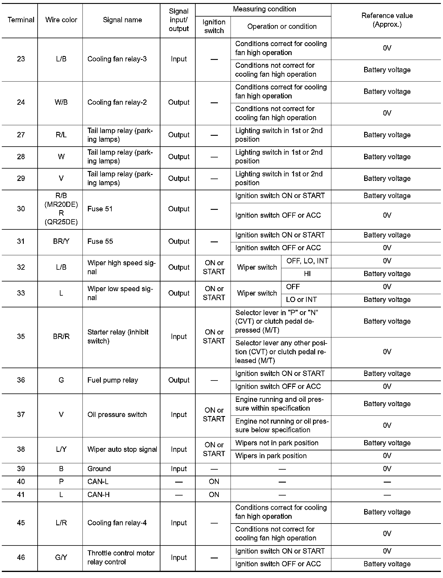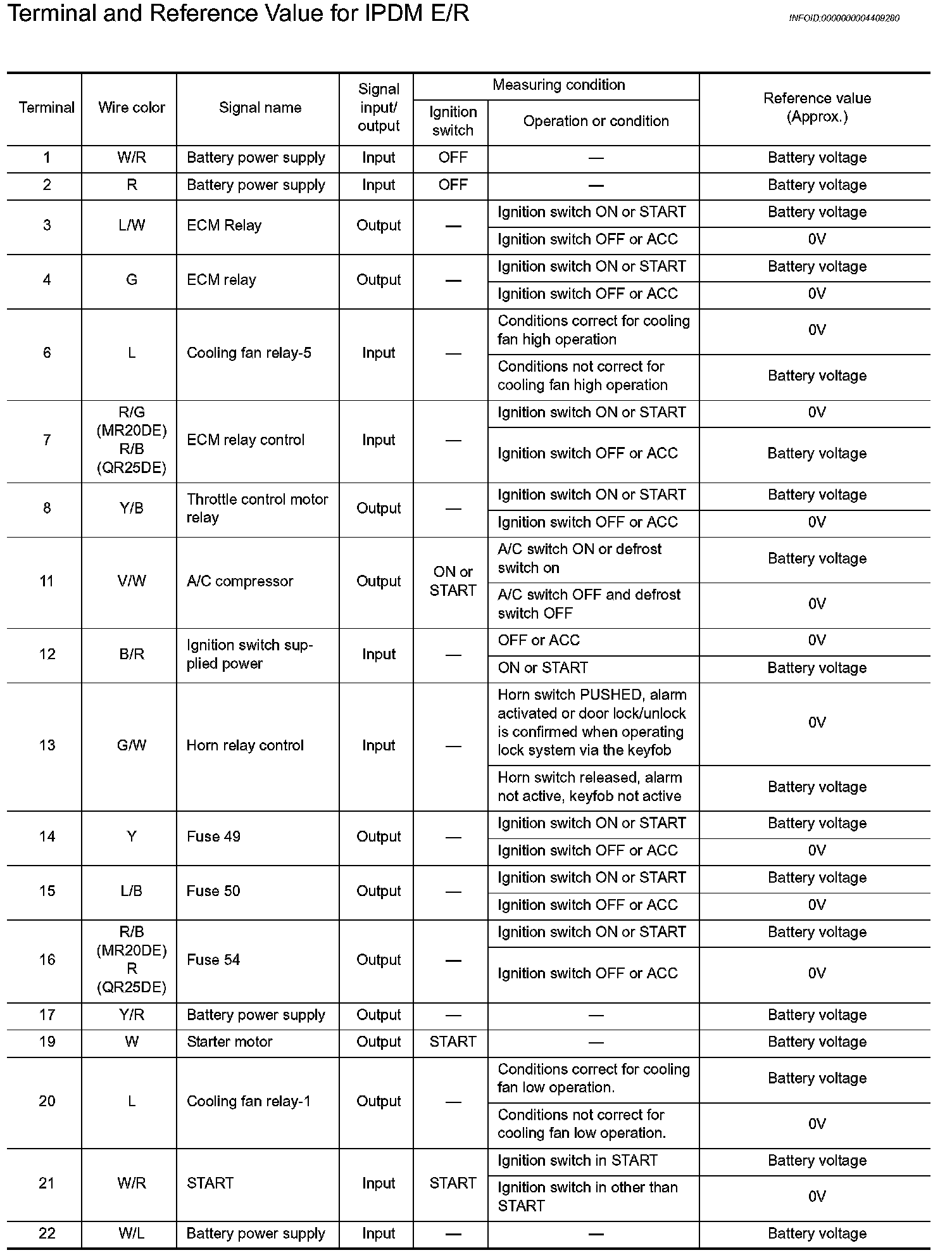Terminal and Reference Value for IPDM E/R