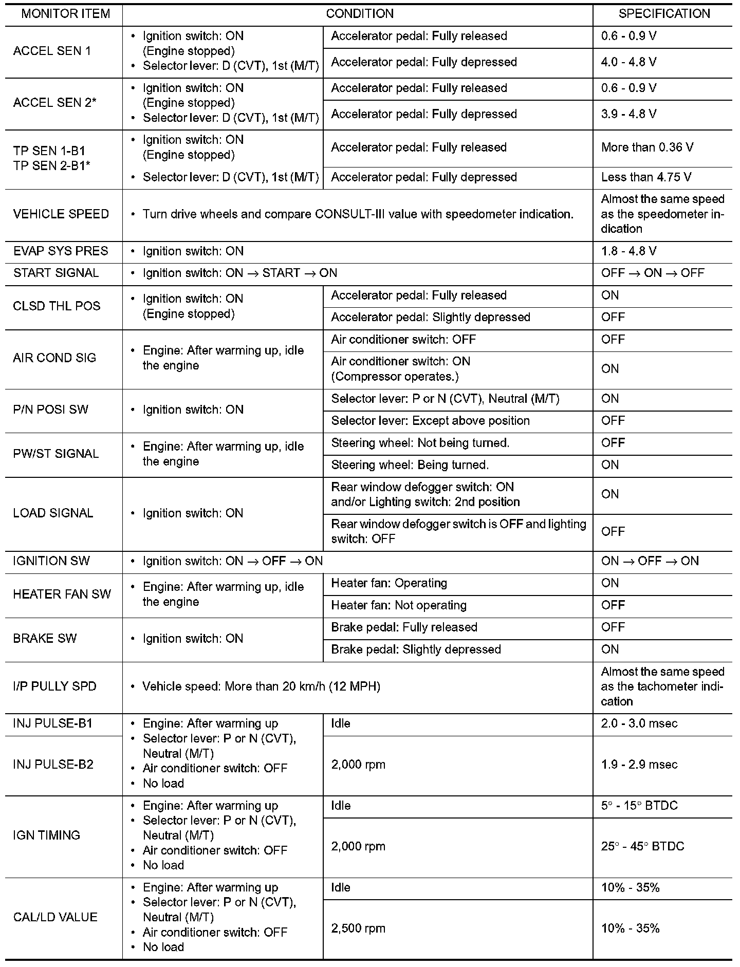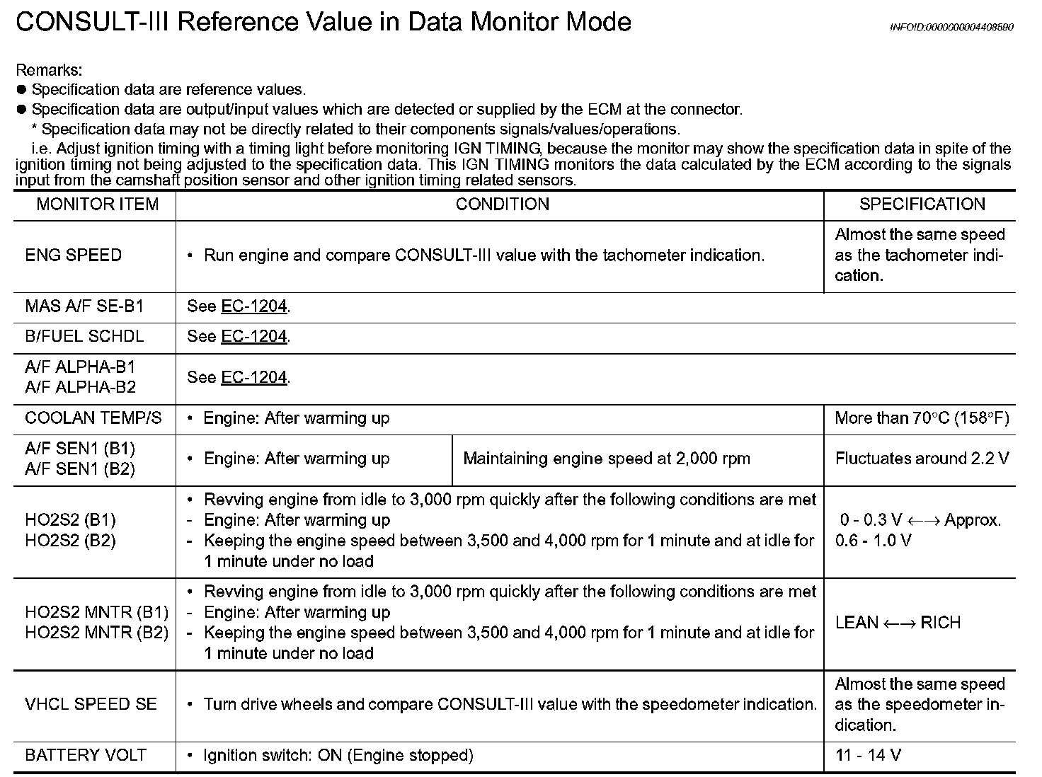 CONSULT-III Reference Value in Data Monitor Mode