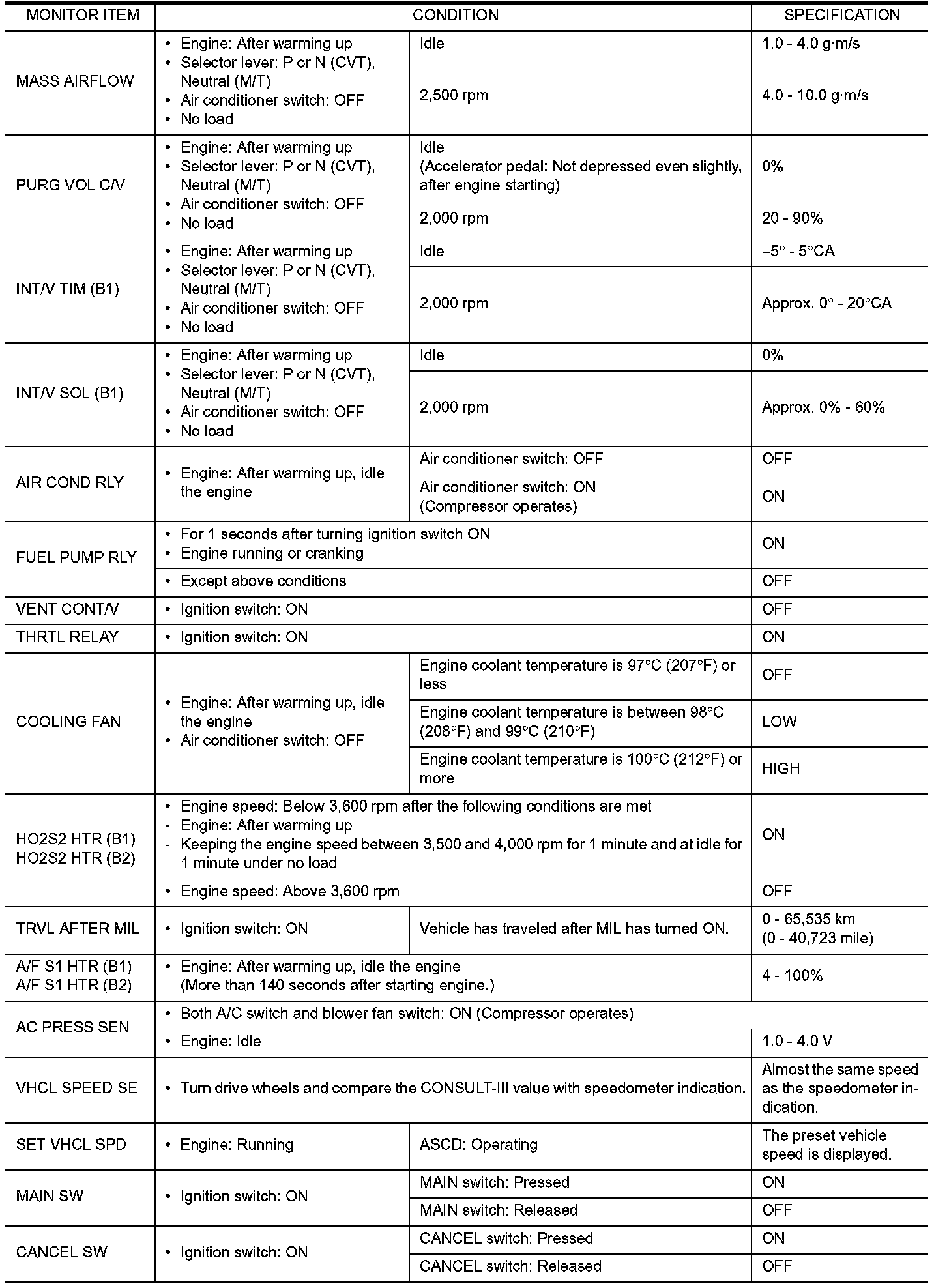 CONSULT-III Reference Value In Data Monitor Mode