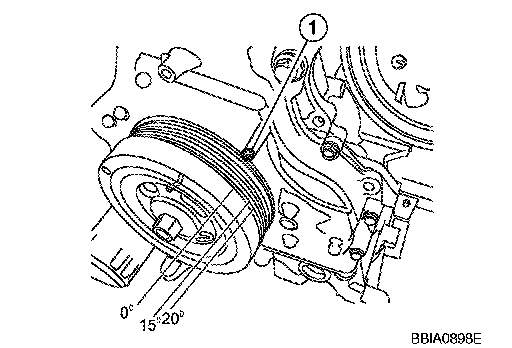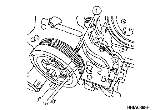2. Connect No. 1 ignition coil (3) and No. 1 spark plug with suitable high-tension wire (1) as shown, and attach timing light (2) clamp to this wire.