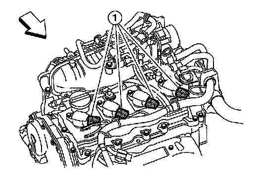 3. Disconnect ignition coil harness connector (1).