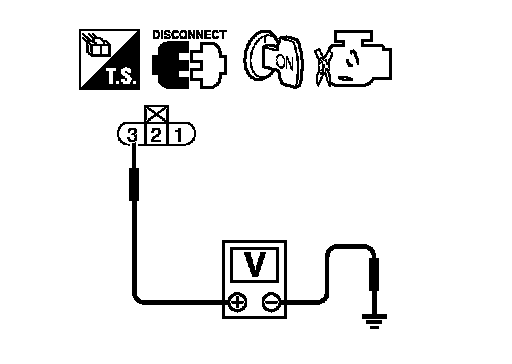 5. Check voltage between ignition coil terminal 3 and ground with CONSULT-III or tester.