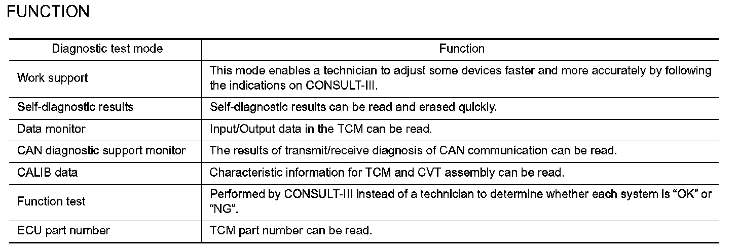 CONSULT-III can display each diagnostic item using the diagnostic test modes shown below.