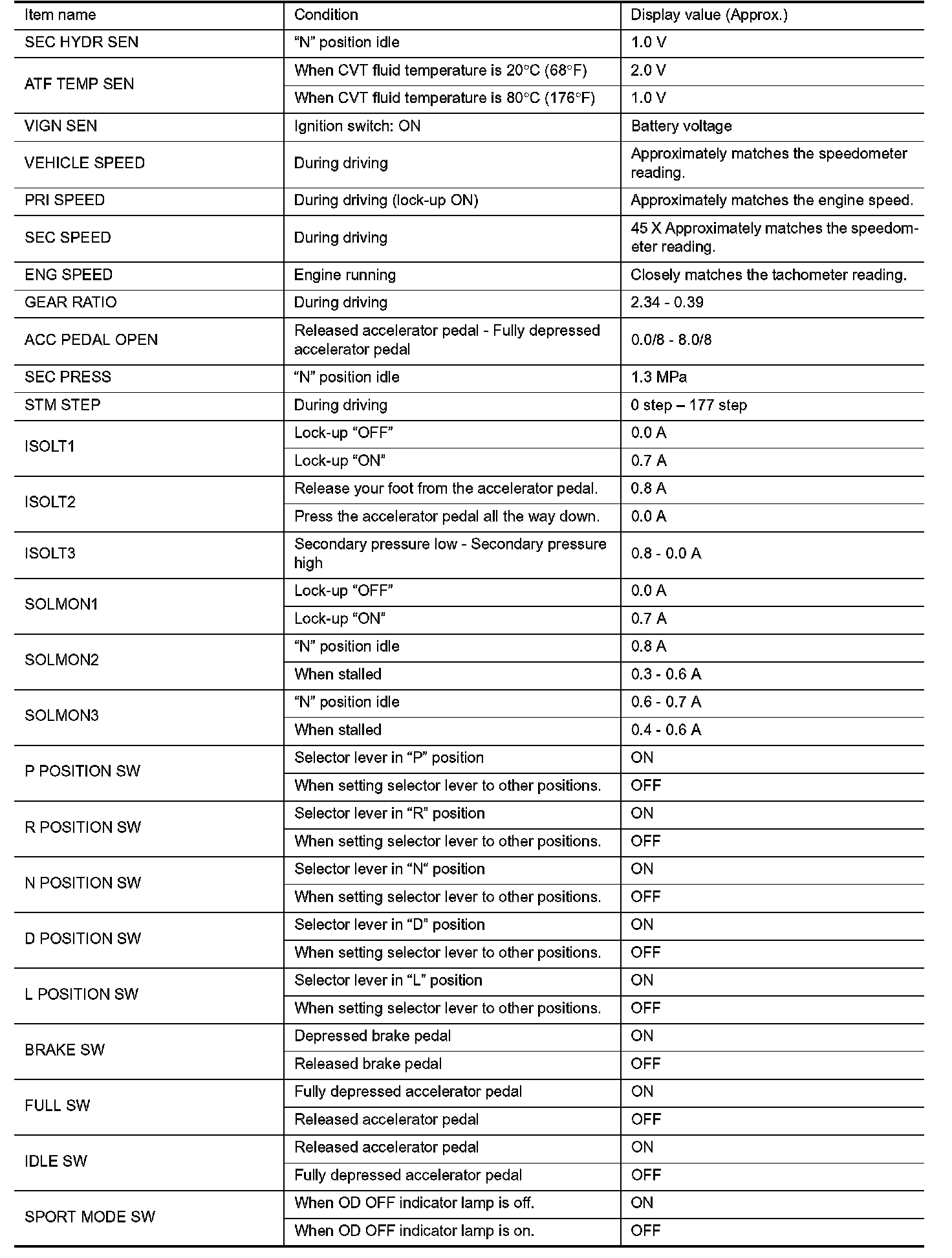CONSULT-III REFERENCE VALUE