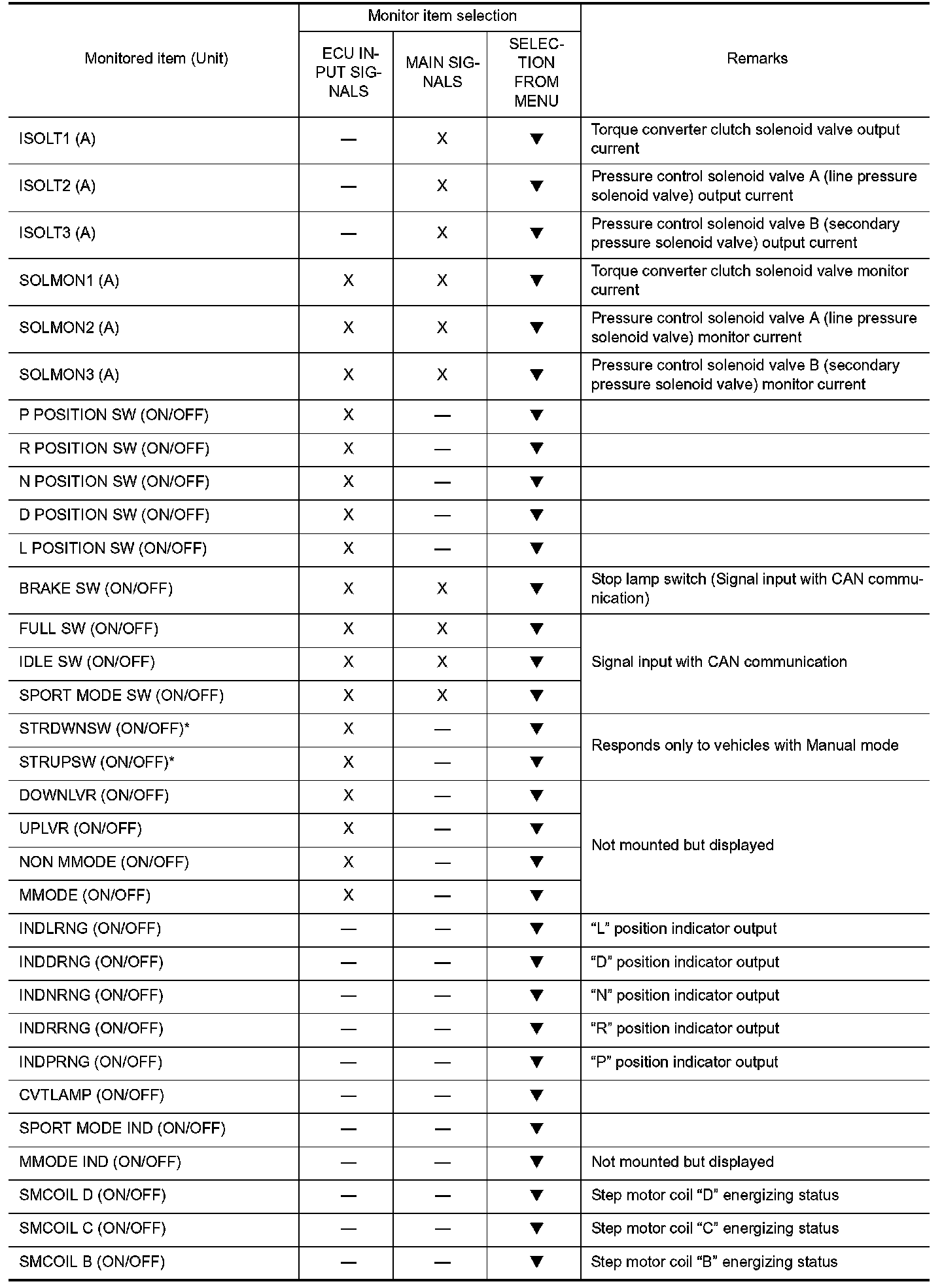 Mode of "+1""0""-1""-2""OFF" can be selected by pressing the "UP""DOWN" on CONSULT-III screen.