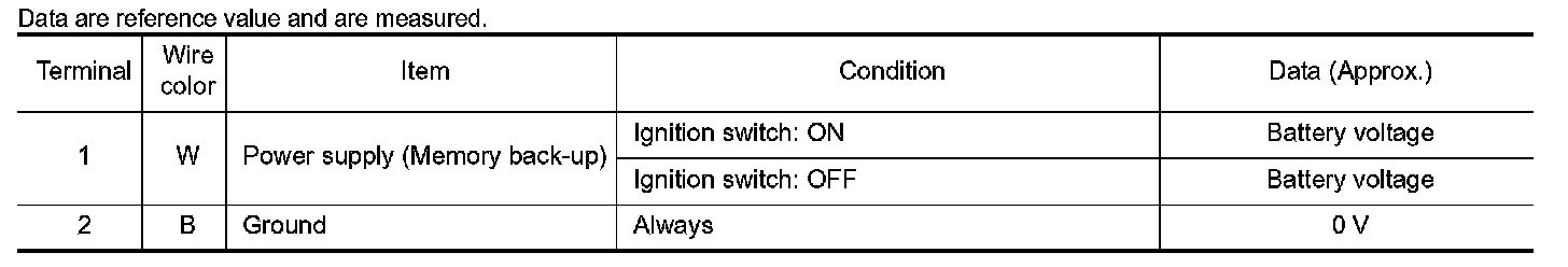 CAUTION: When using a circuit tester to measure voltage for inspection, be sure not to extend forcibly any connector terminals.