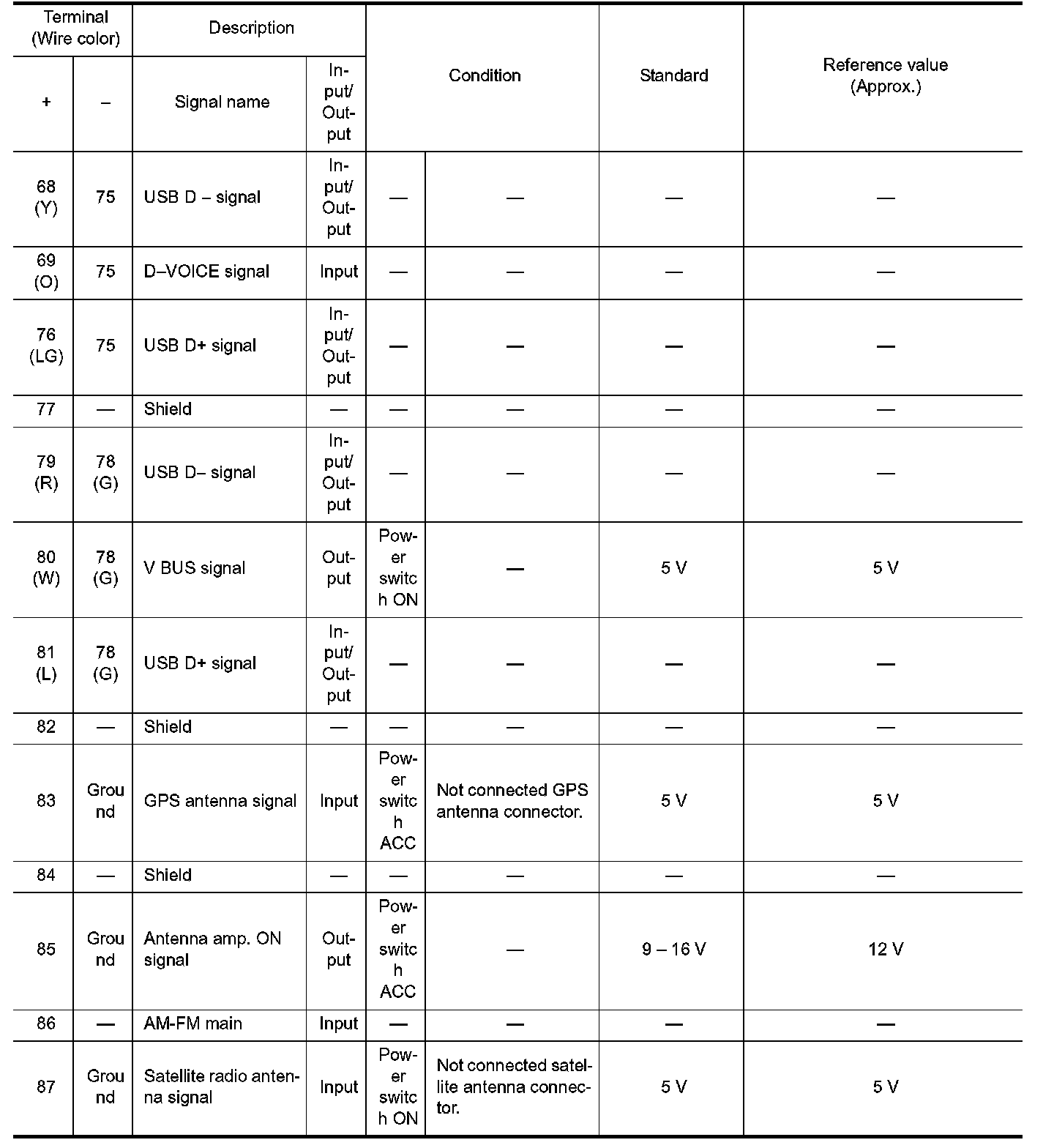 Pinout Values and Diagnostic Parameters