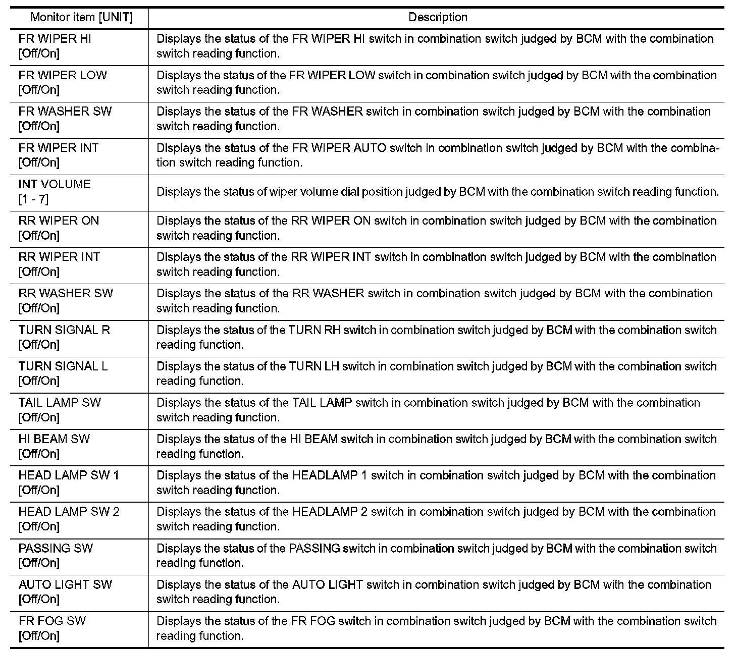 COMB SW : CONSULT Function (BCM - COMB SW)