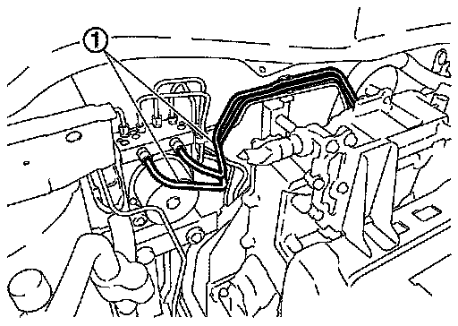 11.Disconnect 2 brake tubes (1). Refer to "FRONT : Exploded View" Exploded View.