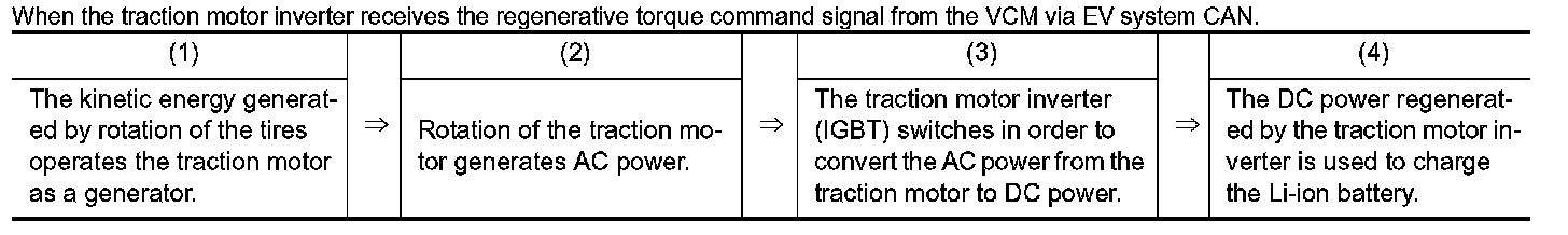 When the traction motor inverter receives the regenerative torque command signal from the VCM via EV system CAN.