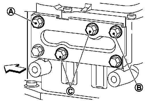 and (B) shown in the figure for positioning purpose before tightening two center bolts (C). After this, tighten four remaining bolts.