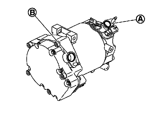 1.Turn the compressor so that it faces downward, and drain the compressor oil from the high-pressure port (A) and lowpressure port (B).
