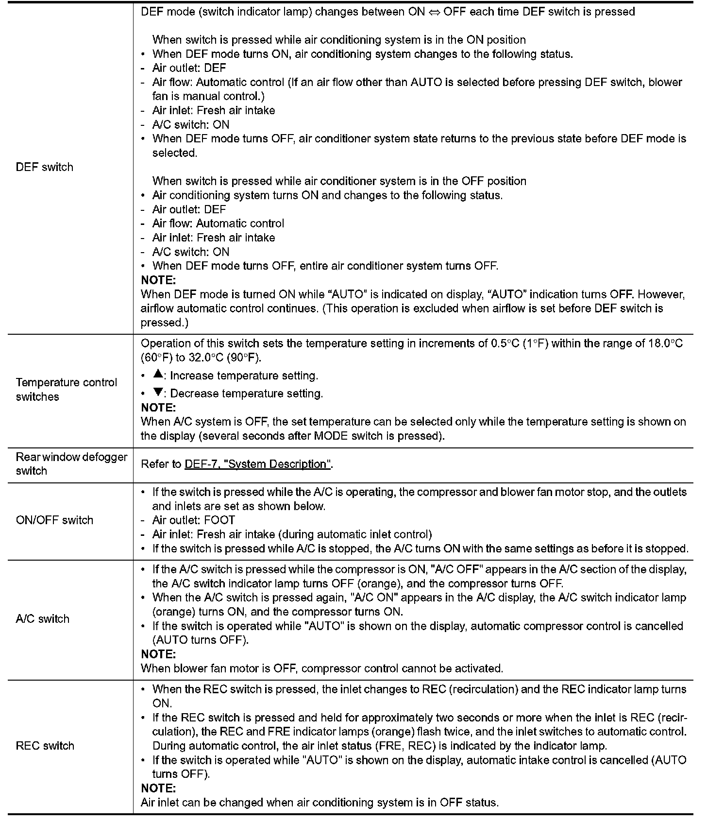 AUTO A/C SYSTEM OPERATIONS AND DISPLAYS