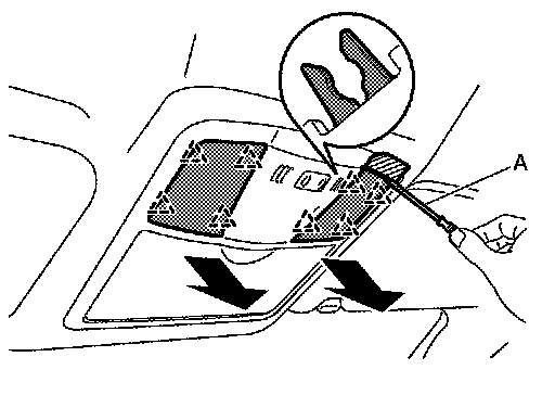 a.Disengage lamp unit fixing pawls with a remover tool (A).