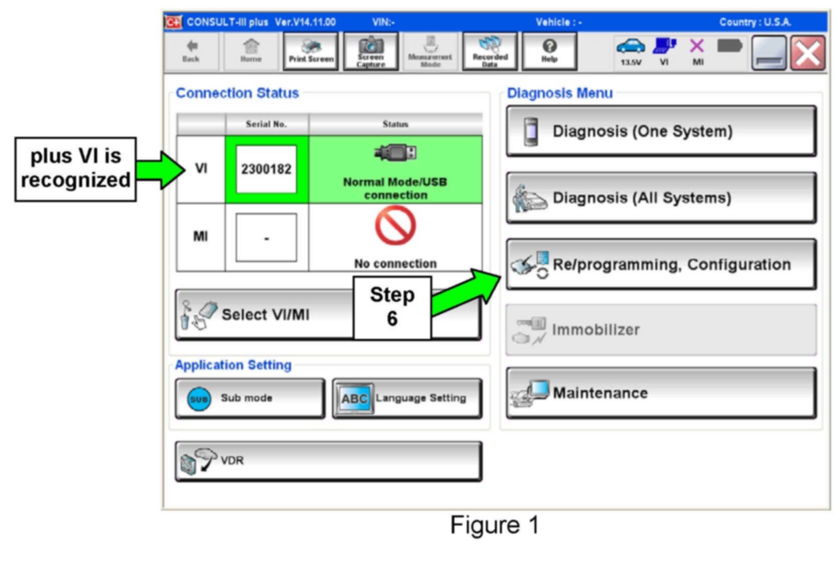 6. After the plus VI is recognized, select Re/programming, Configuration.