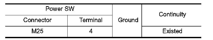 5.Check continuity between power switch harness connector and ground.