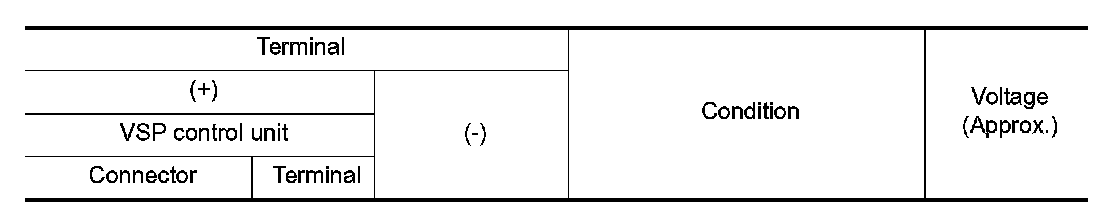 3.Check voltage between VSP control unit harness connector and ground.