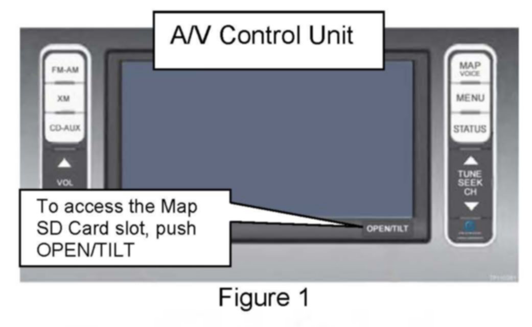 When replacing (exchanging) an A/V Control Unit, Do Not remove the Map SD Card. The Map SD Card is matched to the unit.