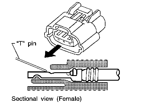 Standard type (not waterproof type) connector should be probed from harness side with "T" pin.
