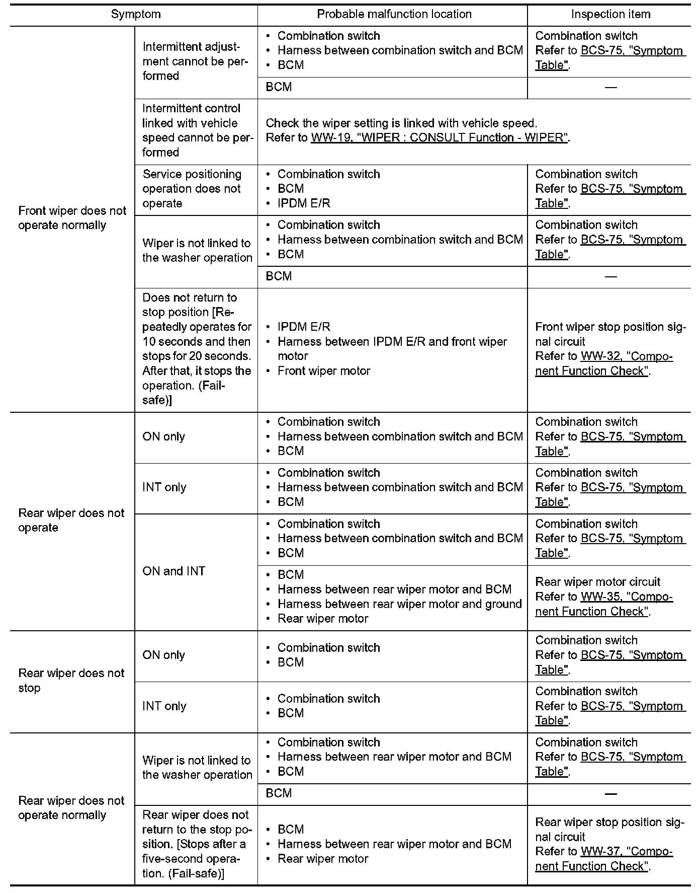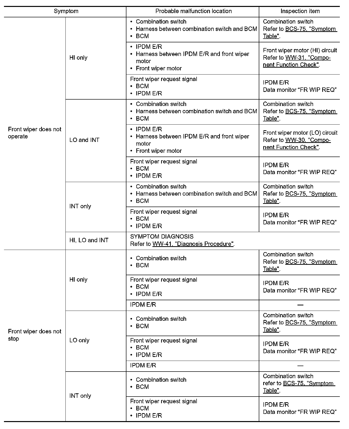 WIPER AND WASHER SYSTEM SYMPTOMS