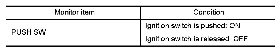 Display "PUSH SW" on DATA MONITOR screen, and check if ON/OFF display is linked to ignition switch operation.