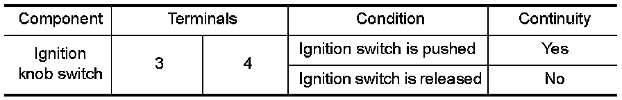 Check continuity between key switch and ignition knob switch terminals 3 and 4.