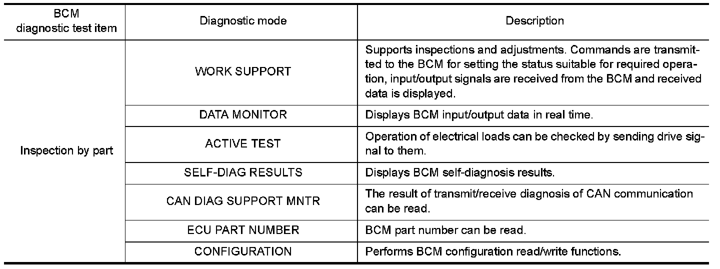 CONSULT-III can display each diagnostic item using the diagnostic test modes shown following.