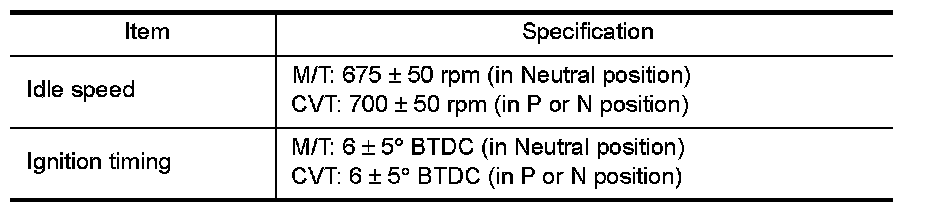 13. If idle speed and ignition timing are not within the specification, Idle Air Volume Learning will not be carried out successfully. In this case, find the cause of the incident by referring to the DIAGNOSTIC PROCEDURE below.