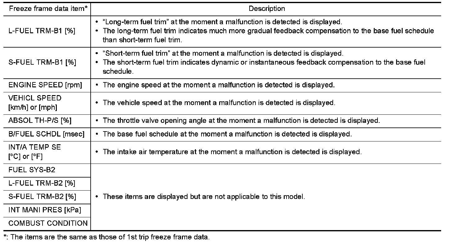 Regarding items of DTC and 1st trip DTC, Emission-Related Diagnostic Information (Except For California).
