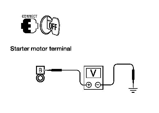 5. Check voltage between starter motor connector F27 terminal B and ground using a digital circuit tester.