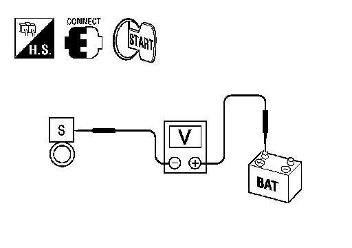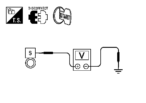 2. Check voltage between starter motor connector F28 terminal S and battery positive terminal using a digital circuit tester.