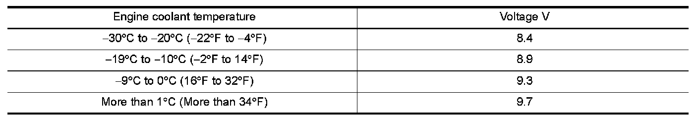 MINIMUM SPECIFICATION OF CRANKING VOLTAGE REFERENCING COOLANT TEMPERATURE