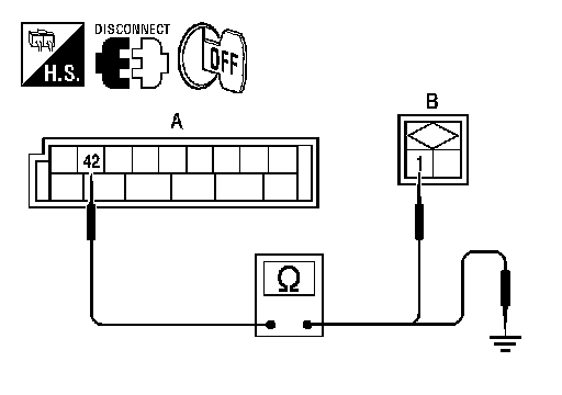 3. Check continuity between BCM harness connector M19 (A) terminal 42 and ground.