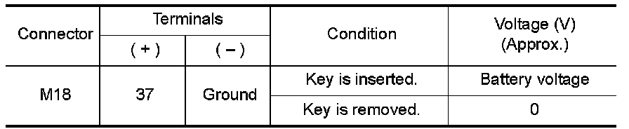 Check key switch "KEY ON SW" in DATA MONITOR mode with CONSULT-III. CONSULT-III Function (BCM).