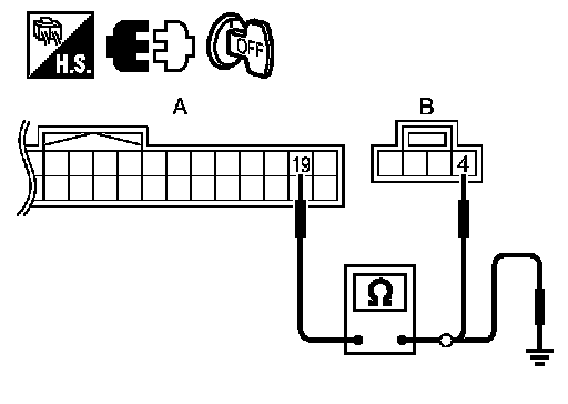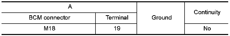 3. Check continuity between BCM connector (A) M18 terminal 19 and ground.