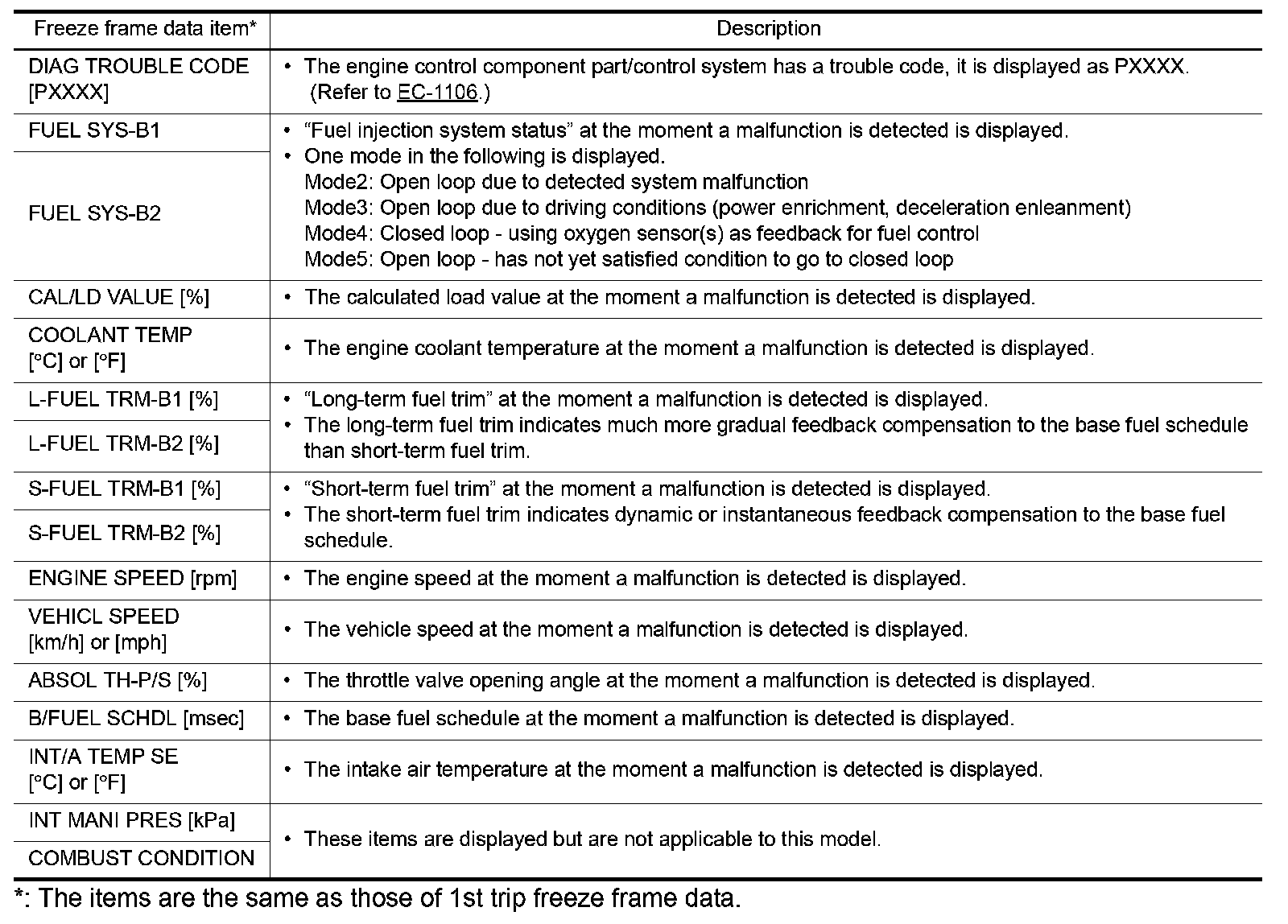 Regarding items of DTC and 1st trip DTC, Emission-Related Diagnostic Information.