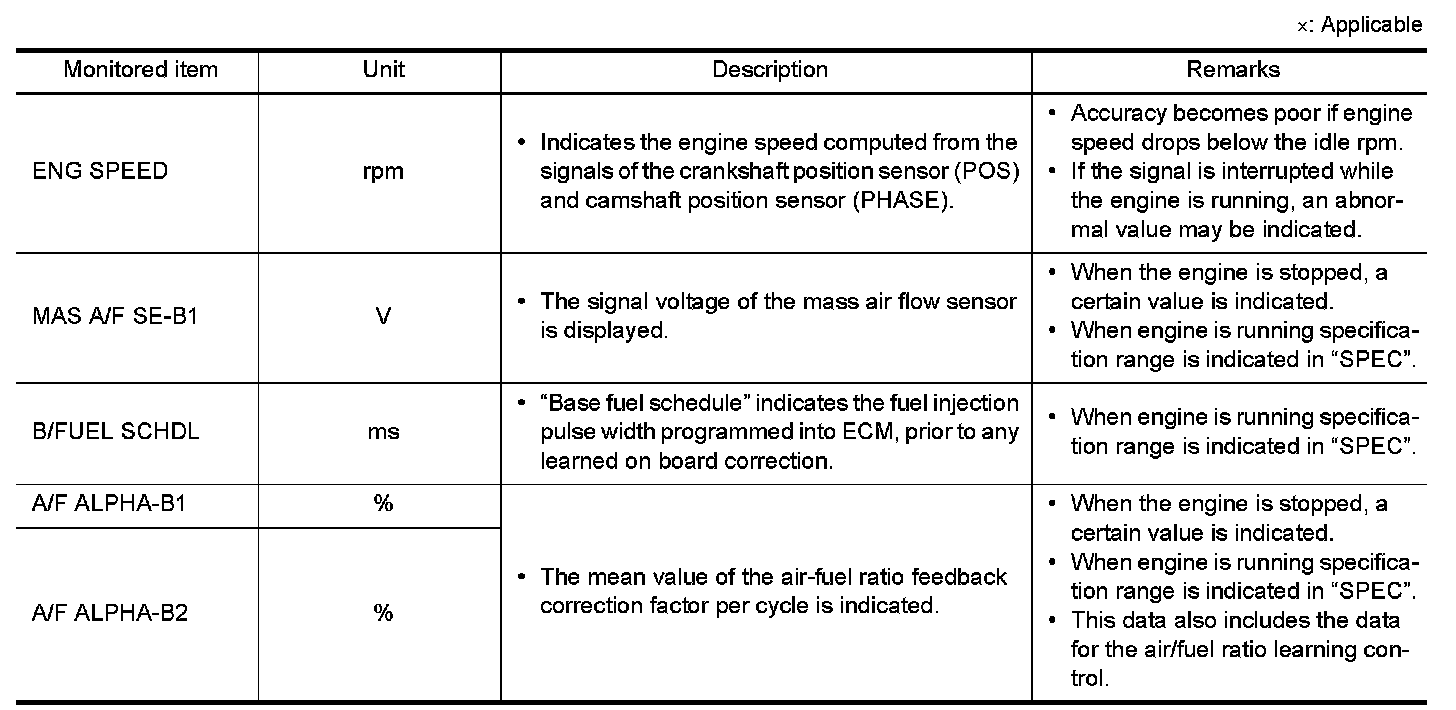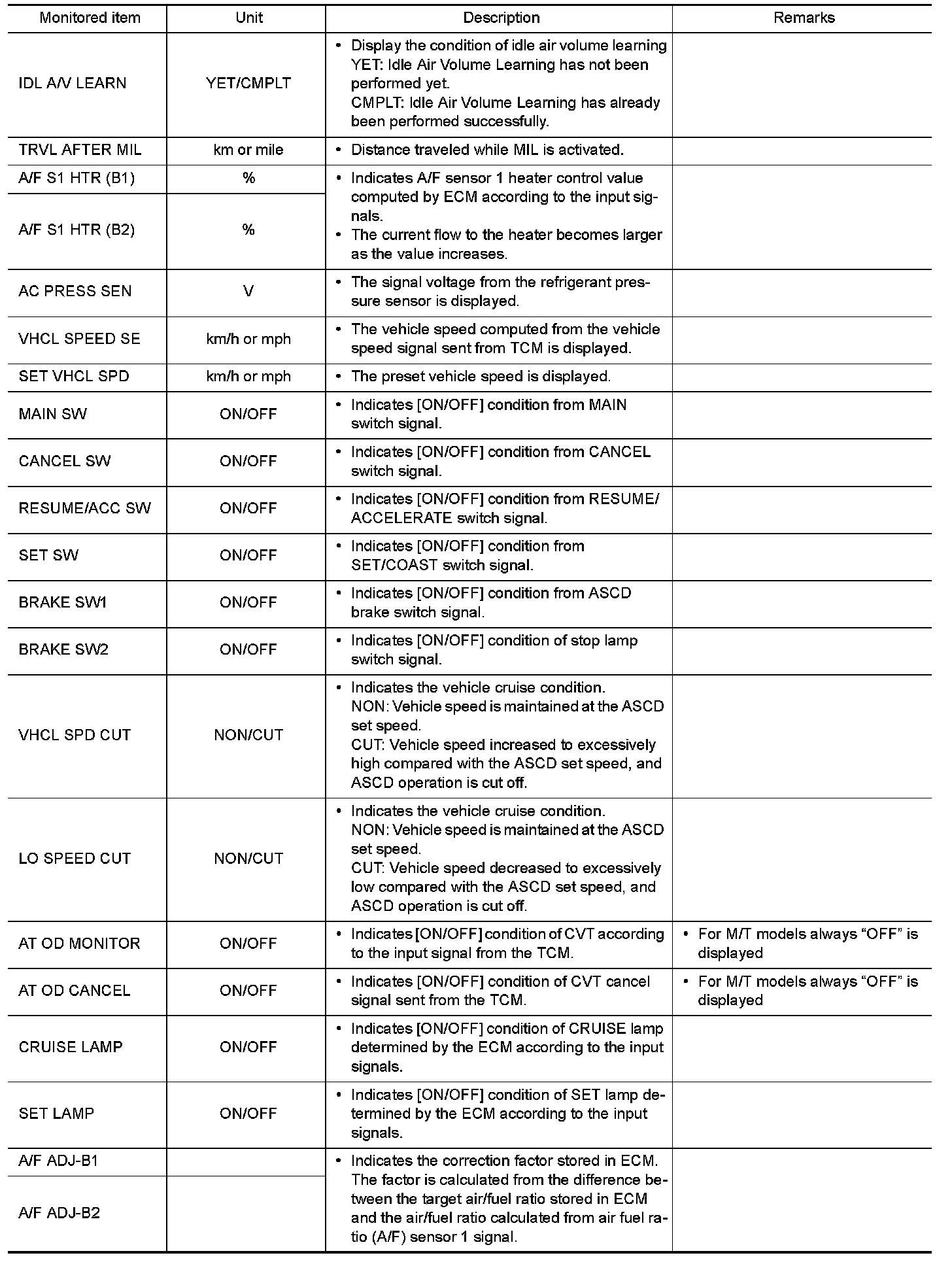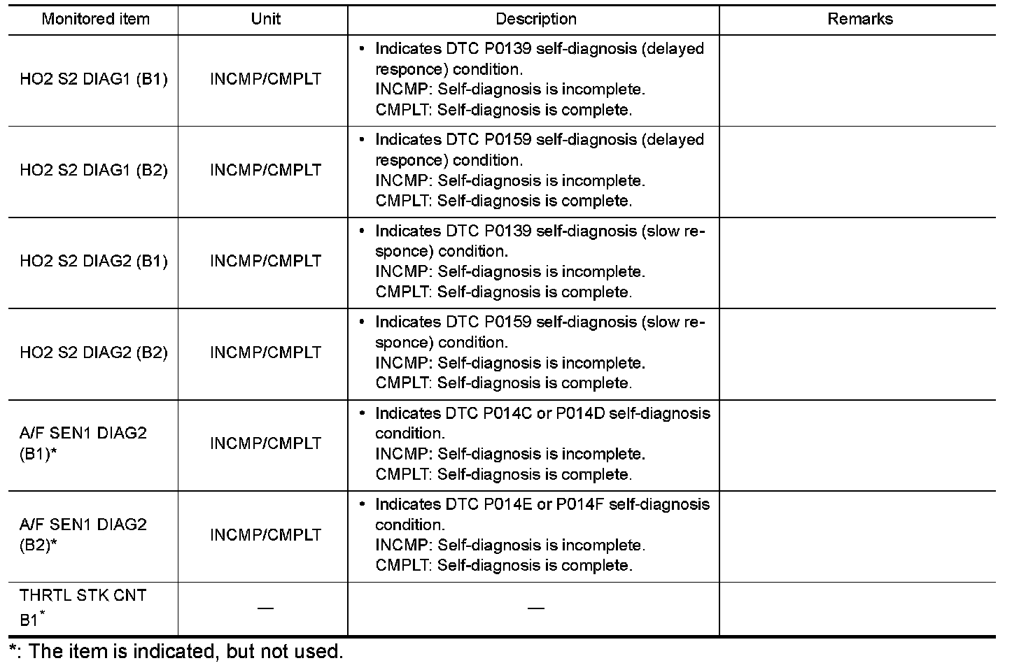 Any monitored item that does not match the vehicle being diagnosed is deleted from the display automatically.