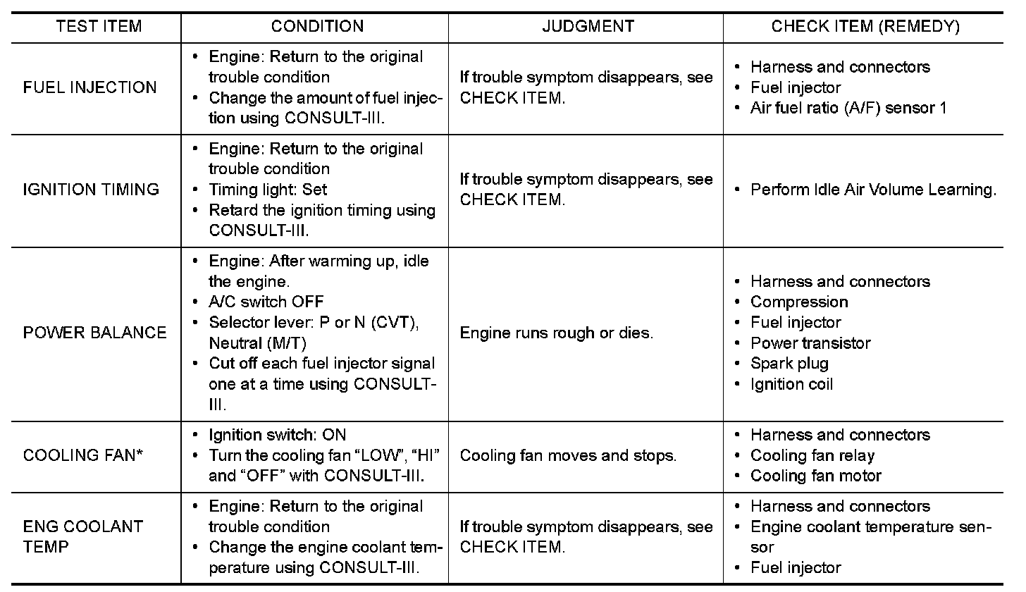- If "TIME" is neither "0" nor "1t", the DTC occurred in the past and ECM shows the number of times the vehicle has been driven since the last detection of the DTC.