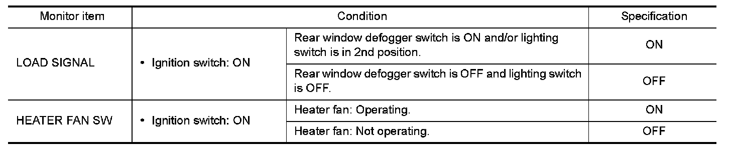Check "HEATER FAN SW" in "DATA MONITOR" mode with CONSULT-III under the following conditions.