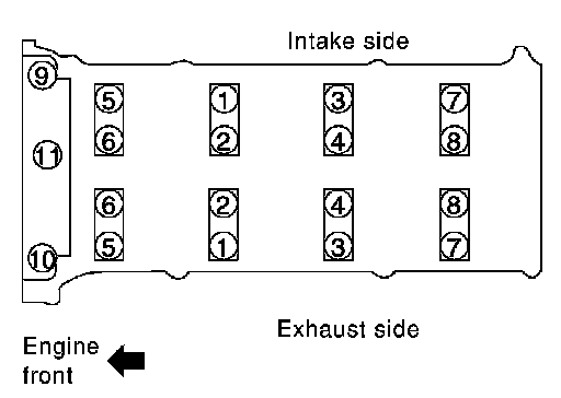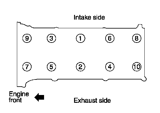 Follow the steps below to tighten the cylinder head bolts using Tool, in the numerical order as shown.