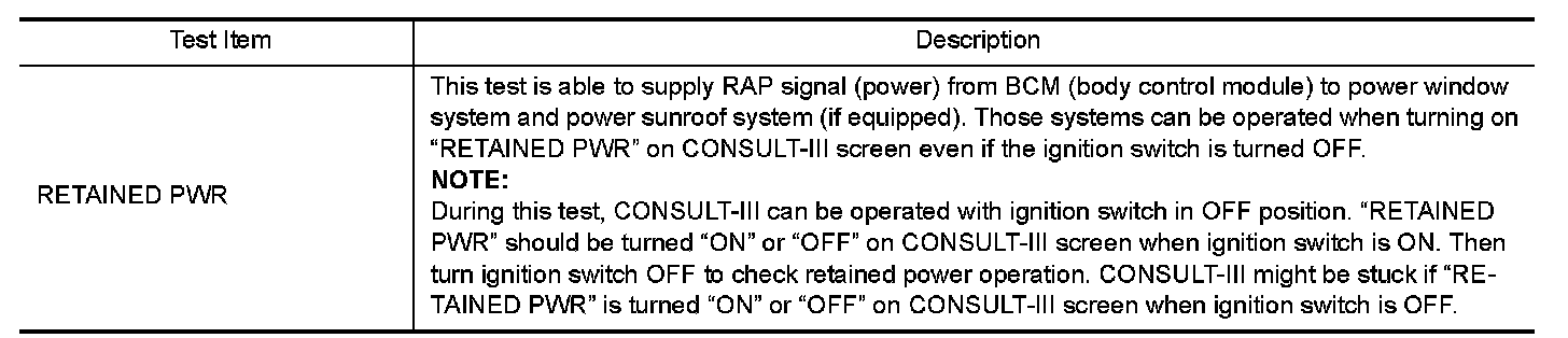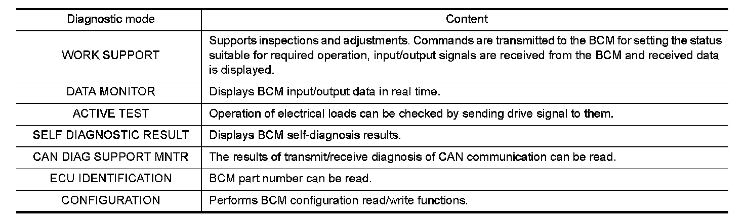 CONSULT-III can display each diagnostic item using the diagnostic test modes shown following.