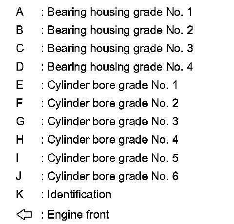 - Piston pin (piston pin hole) grade is provided only for the parts installed at the plant. For service parts, no piston pin grades can be selected. (Only "0" grade is available.)