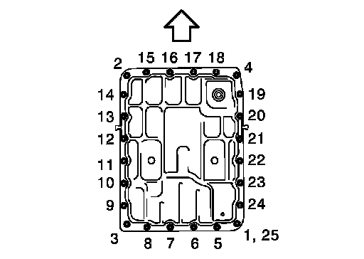 Tighten the oil pan mounting bolts to the specified torque in the numerical order as shown in the figure after temporarily tightening them.