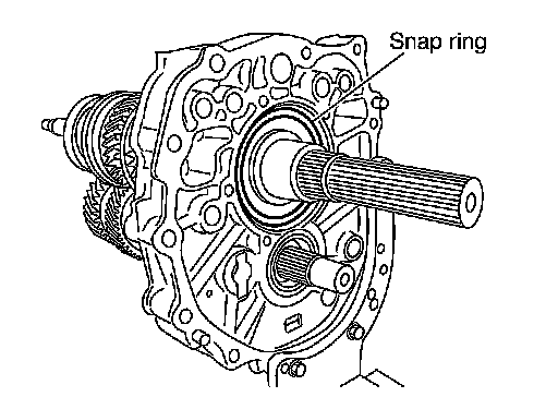 9.Select and install snap ring (1) so that the end play "L" of mainshaft is adjusted to the standard value. For selecting snap ring, refer to the latest parts information.